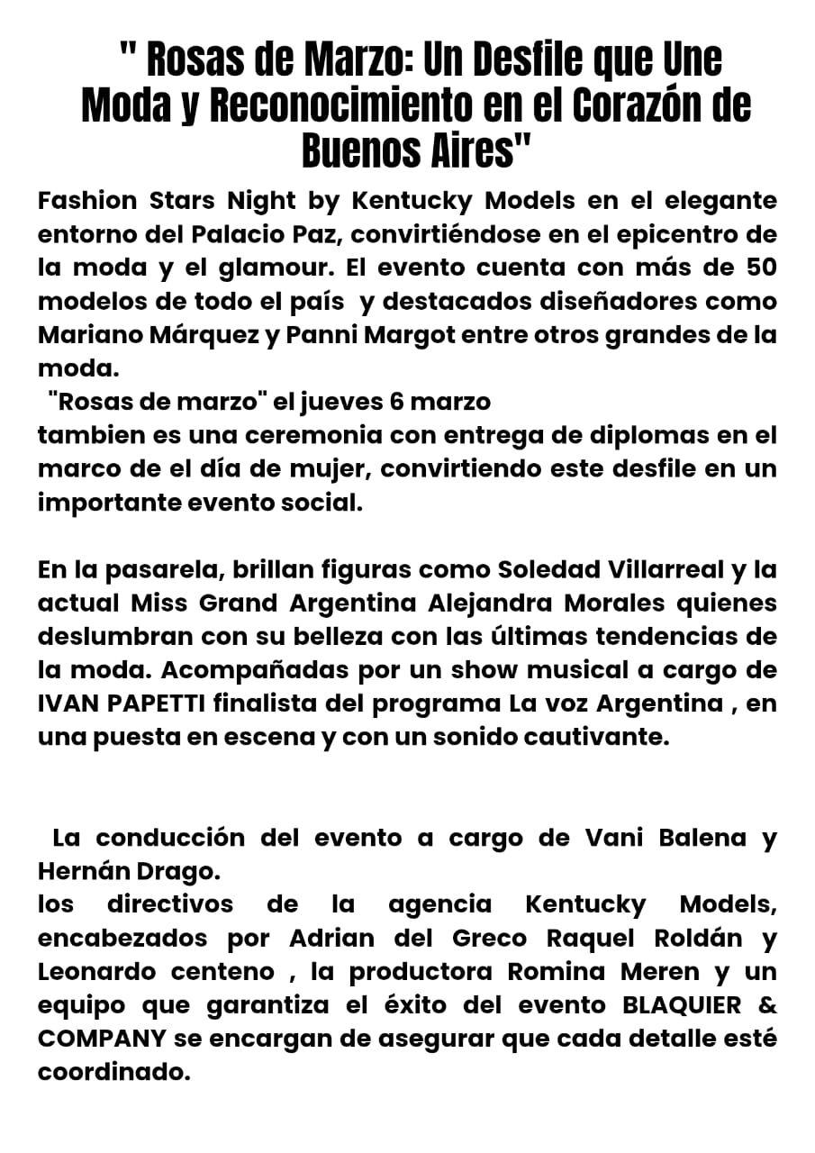 ActualidadMUNICIPIOSPortada “Rosas de Marzo”: Un desfile que une moda y reconocimiento jueves, 6 de marzo de 2025 Compartir Facebook Twitter WhatsApp El Palacio Paz fue testigo de un esplendor.