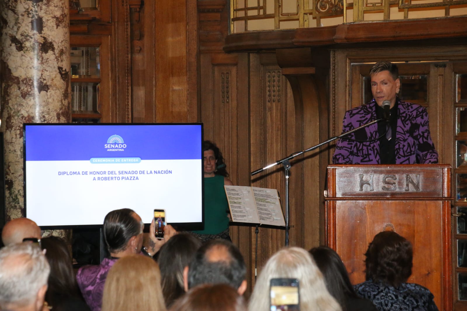 Este martes, en las instalaciones del emblemático Edificio del Molino, se llevó a cabo un emotivo reconocimiento al diseñador Roberto Piazza por su destacada trayectoria artística. En el acto, se le entregó un Diploma de Honor del Senado de la Nación, en mérito a su valioso aporte a la cultura argentina y a su incansable defensa de la libertad creativa y la dignidad humana, valores que enaltecen a la Nación y la proyectan al mundo.
