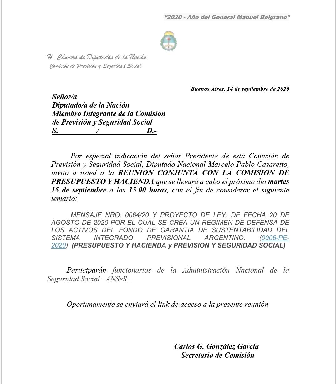 * Nota de la Comisión de Presupuesto y Hacienda con temas de la reunión de este martes 15/09 a las 15 hs.