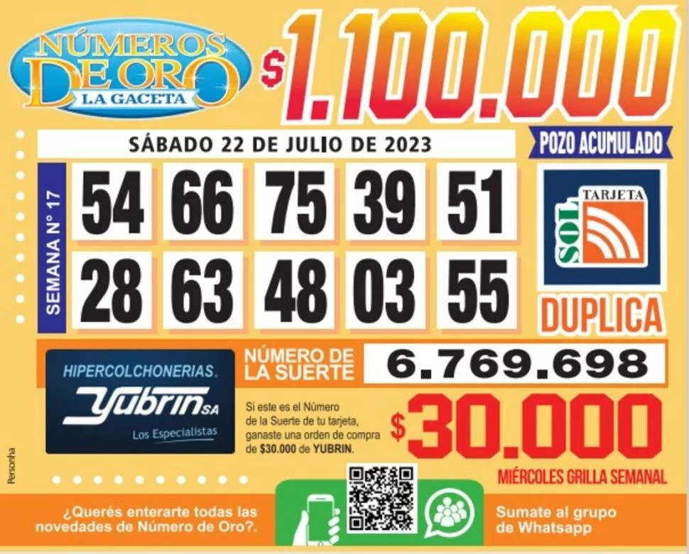ProvinciasTucumán Los Números de Oro de LA GACETA del 22 de julio de 2023 sábado, 22 de julio de 2023 Compartir Facebook Twitter WhatsApp