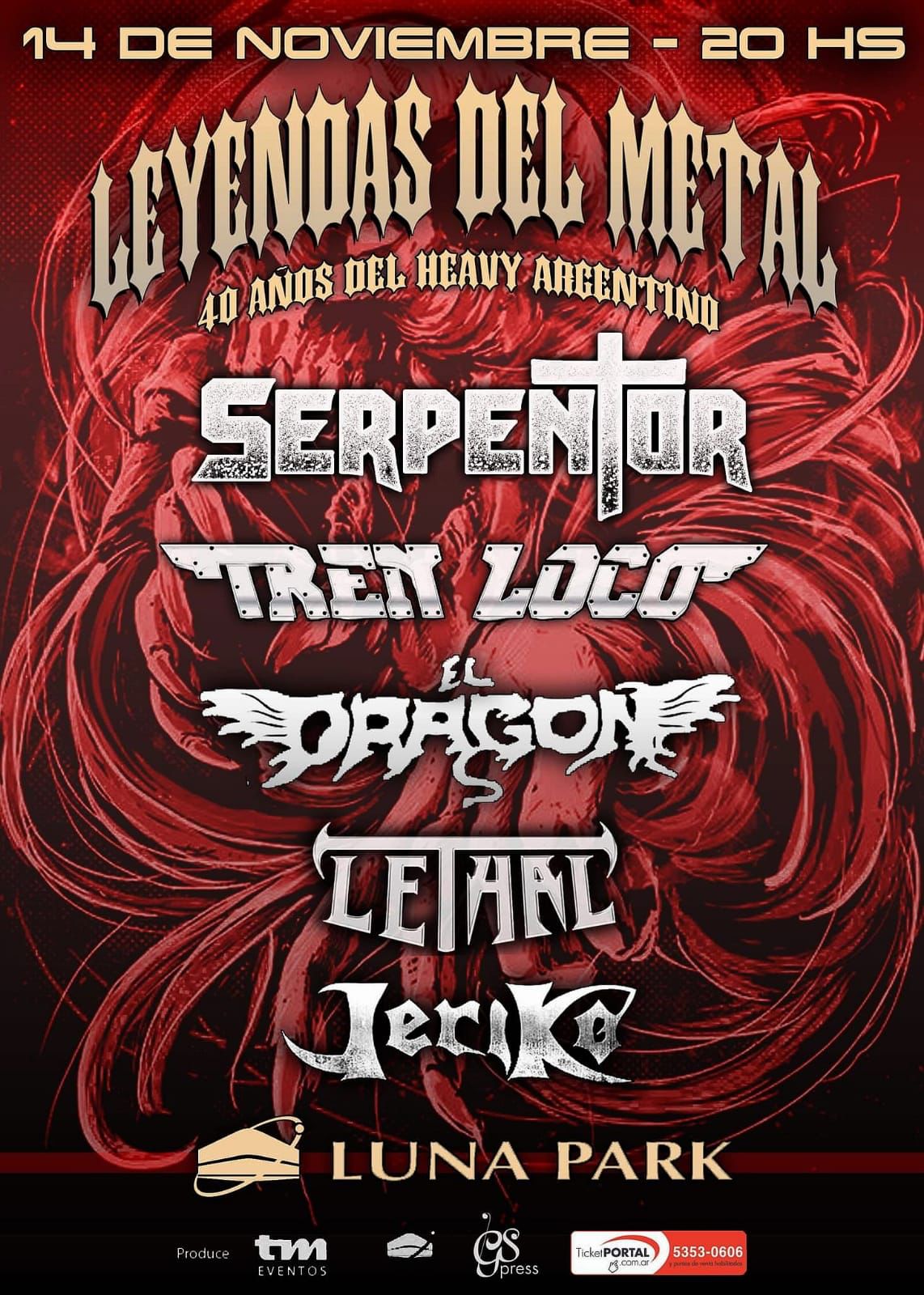 La cita de honor será para el 14 de Noviembre del año 2022 a las 20 hs , y el lugar de la batalla será en el mítico estadio LUNA PARK, el gran circo romano de la música , que programará en su escenario, el evento denominado “LEYENDAS DEL HEAVY METAL ARGENTINO”, el gran homenaje a 40 años de sentimiento metálico.